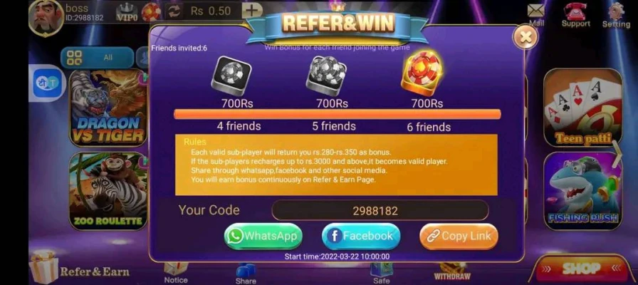 You can invite your friends to join 3 Patti Live. When they sign up and deposit money, you earn a commission.
