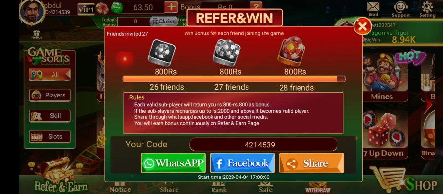 Players can deposit and withdraw money easily using JazzCash, EasyPaisa, or bank transfer. The system is built to be safe and user-friendly.